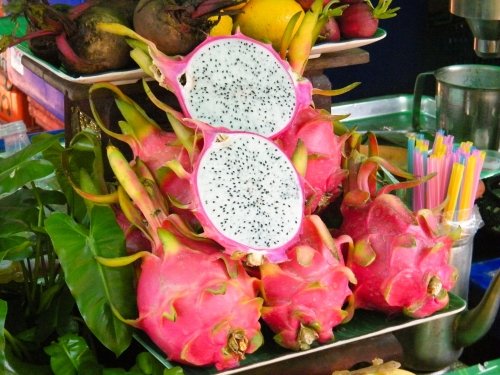 Dragon fruit grows on the Hylocereus cactus, also known as the Honolulu queen, whose flowers only open at night.